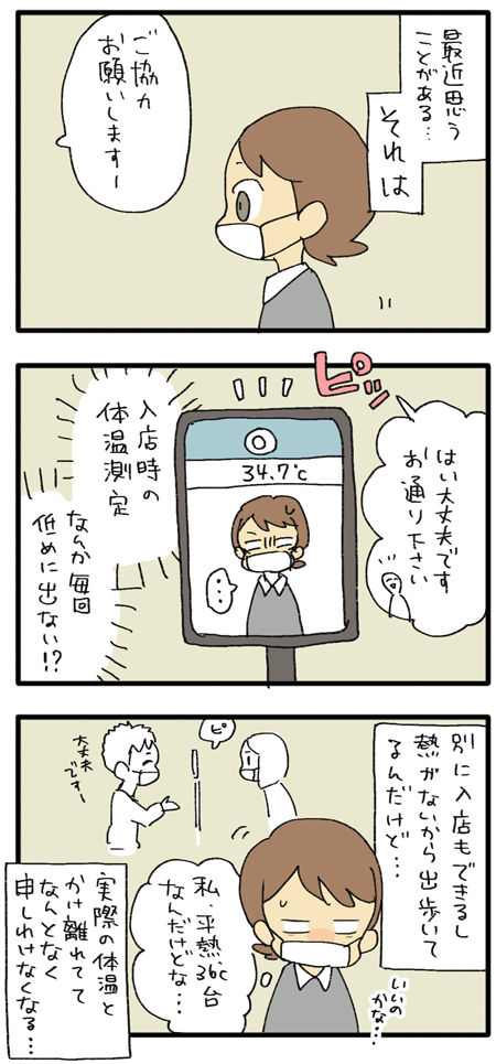 家で測ってきた体温より0.5~1度くらい低めに出る気がする。